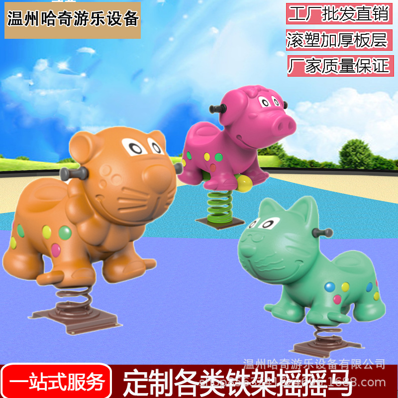Mainan persegi musim semi santai luar ruangan fasilitas hiburan bingkai besi musik goyang komunitas taman kanak-kanak kuda goyang besar anak-anak