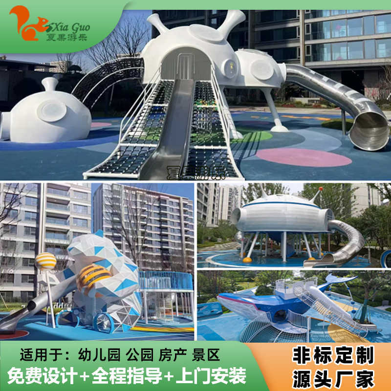 Luar Ruangan Besar Stainless Steel Slide Tidak Ada Daya Wahana UFO Theme Park Slide Kombinasi Anak Slide