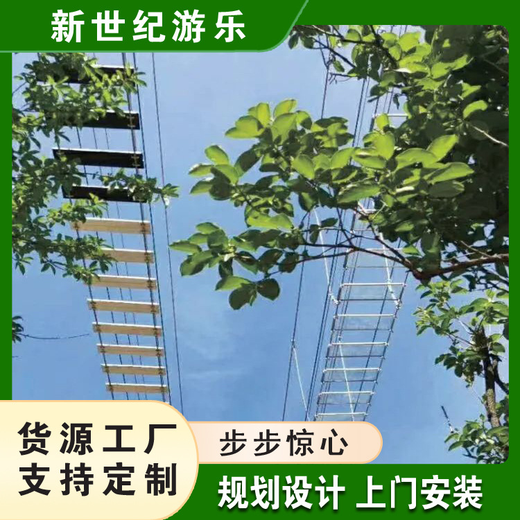 Jembatan air yang indah, jaring merah, langkah demi langkah, jembatan gantung kayu anti korosi, proyek tantangan mendebarkan orang dewasa