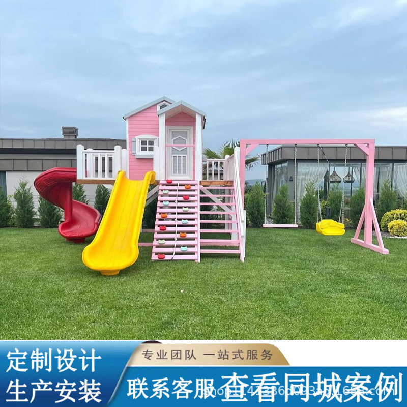 Peralatan bermain slide anak luar ruangan besar peralatan ayunan memanjat kombinasi slide halaman dokter kecil pabrik kustom