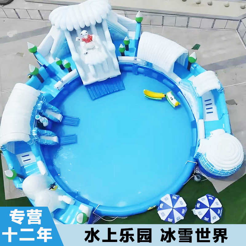 Peralatan Taman Air Inflatable Luar Ruangan Besar Produsen Slide Braket Kolam Renang Air Mengapung Dunia Salju