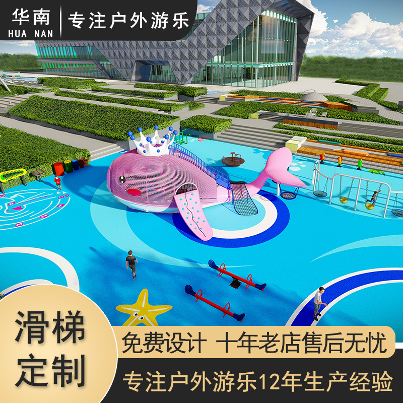 Komunitas Taman Paus Slide Luar Ruangan Besar Stainless Steel Slide Fasilitas Taman Bermain Anak Kombinasi Pendukung Panjat