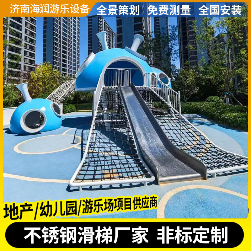 Perosotan besi tahan karat besar untuk anak-anak luar ruangan perlengkapan bermain kombinasi komunitas luar ruangan fasilitas tanpa daya