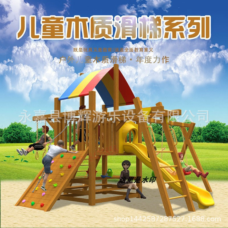 Taman kanak-kanak luar ruangan besar anak-anak kayu ayunan Amerika perosotan kombinasi taman komunitas fasilitas hiburan kayu
