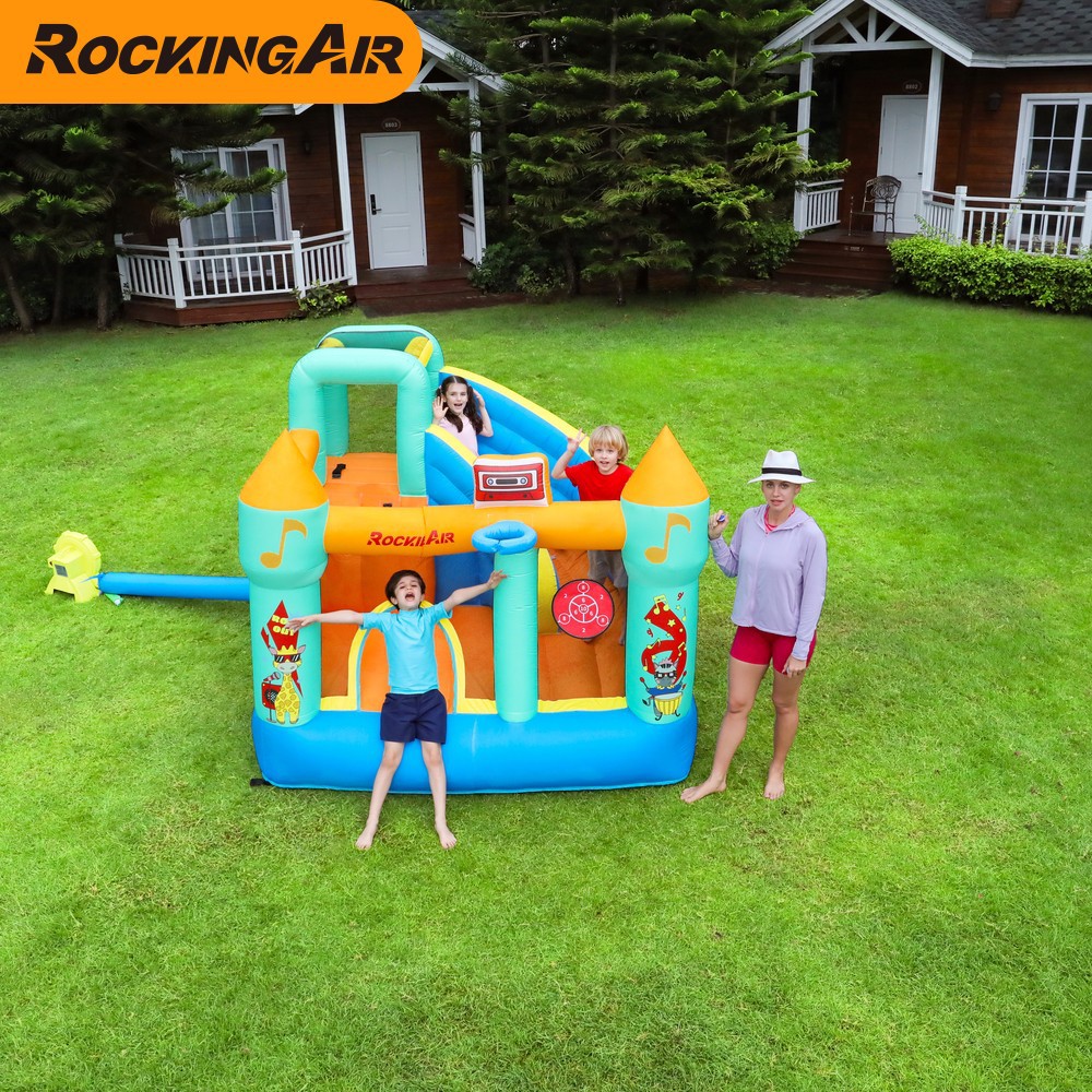 Kastil tiup anak-anak model baru luar ruangan trampolin besar panjat tebing slide persegi berdiri peralatan bermain benteng nakal