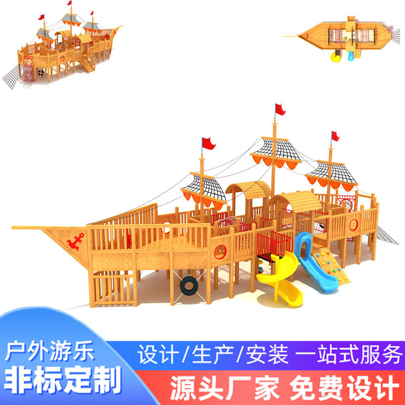 Seluncuran Kayu Luar Ruangan Rak Panjat Tebing Anak-anak Taman Kanak-kanak Luar Ruangan Besar Taman Taman Hiburan Kayu Non-Standar