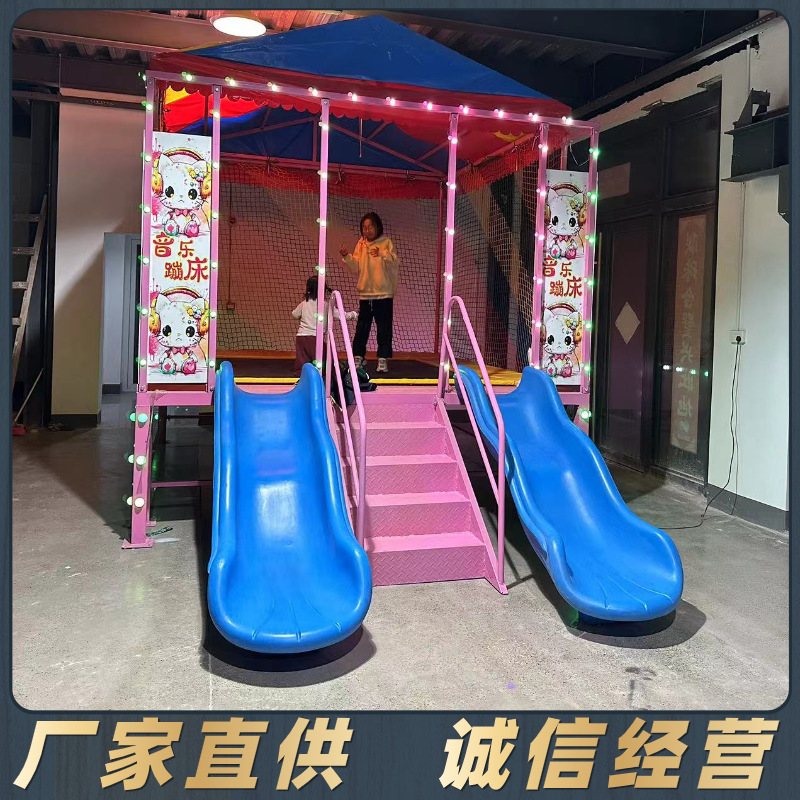 Baru musik anak-anak bercahaya trampolin persegi belanja Mall taman bingkai baja tempat tidur lompat luar ruangan pabrik bungee geser