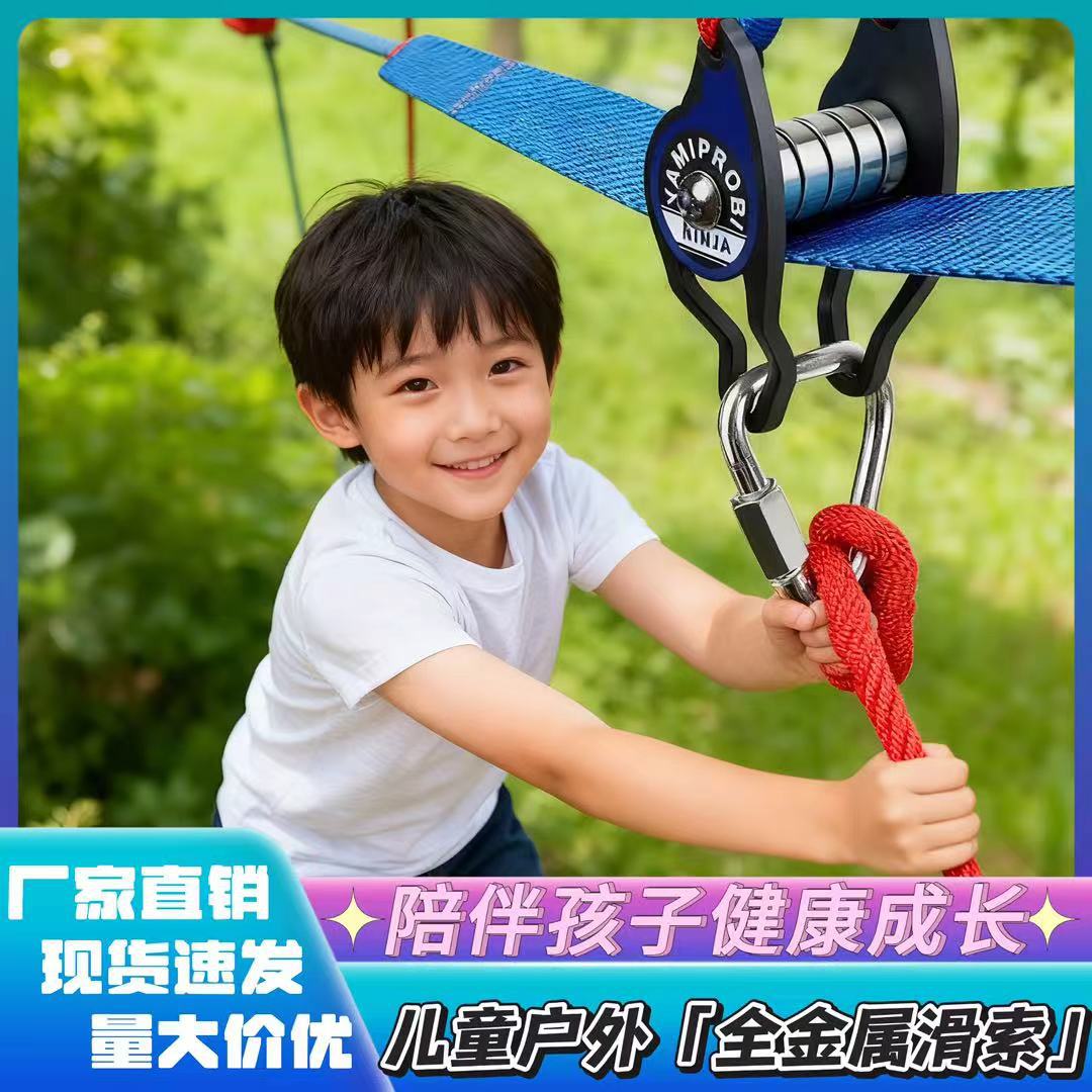 Tali geser halaman belakang logam penuh, tali latihan paralel tantangan ekstrem anak-anak, tali geser hiburan, aksesori peralatan tali geser
