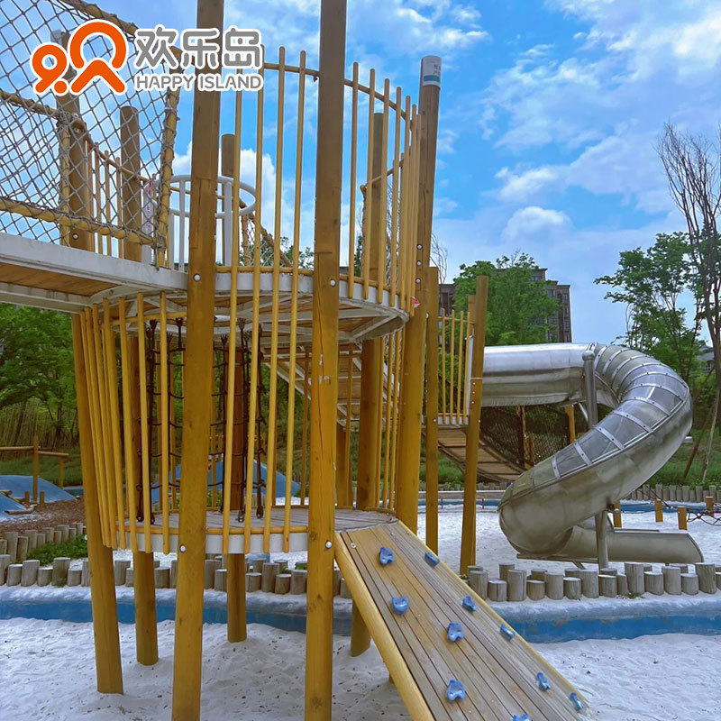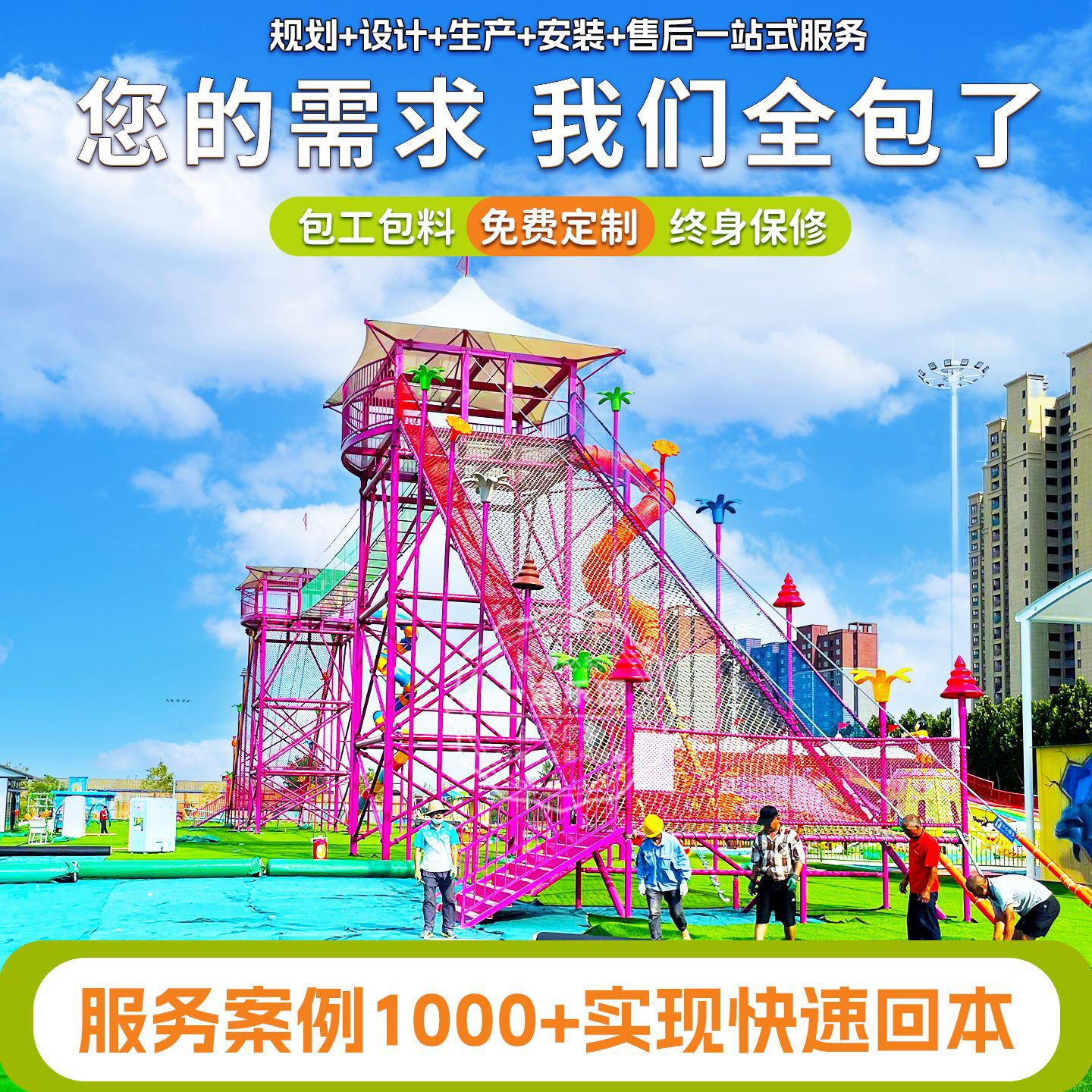 Outdoor Area Pemandangan Skala Besar Taman Sky Trail Peralatan Bermain Anak Slide Climbing Net Produsen