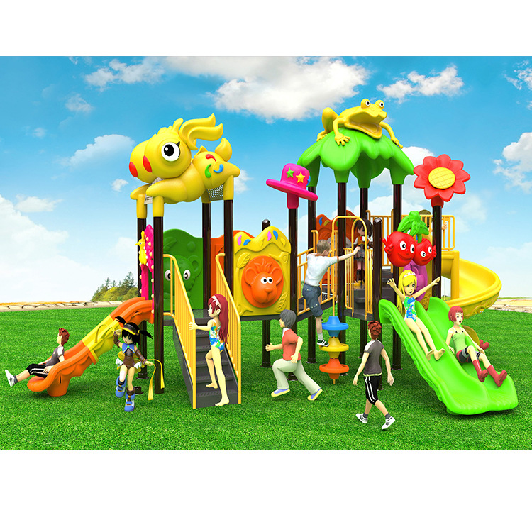 Peralatan bermain tanpa daya tanpa standar slide plastik luar ruangan kombinasi taman kanak-kanak