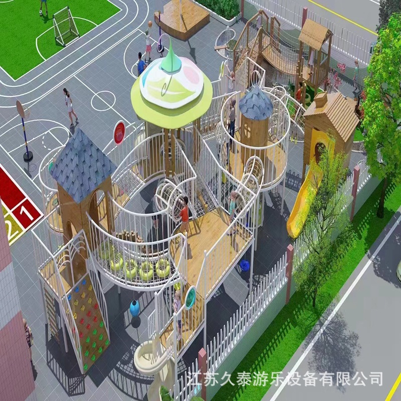 Produsen mengembangkan perosotan stainless steel besar, peralatan taman bermain anak-anak luar ruangan serta fasilitas hiburan kombinasi mendaki