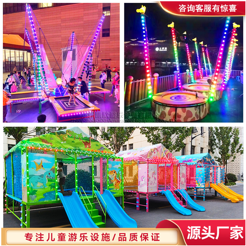 Shopping mall Bungee musik anak-anak bercahaya tempat tidur taman kios persegi trampolin listrik mewah multi-orang memantul bungee