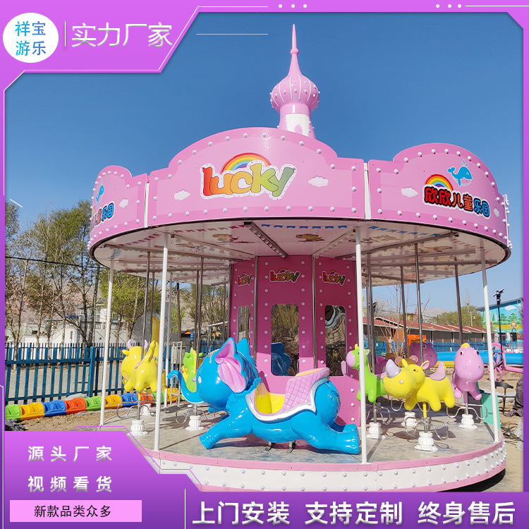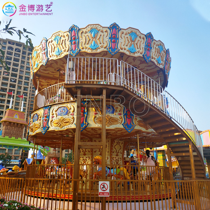 Fokus korsel taman hiburan pada produsen pemasangan pintu ke pintu peralatan hiburan Carousel mewah kecil
