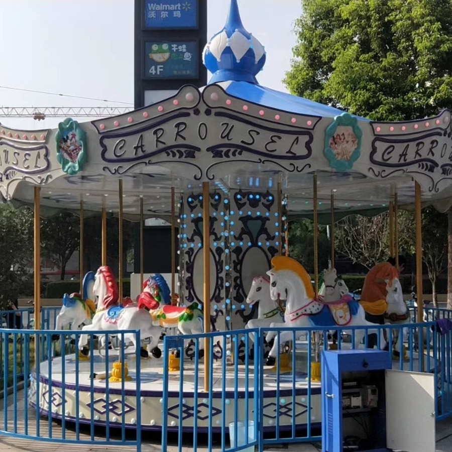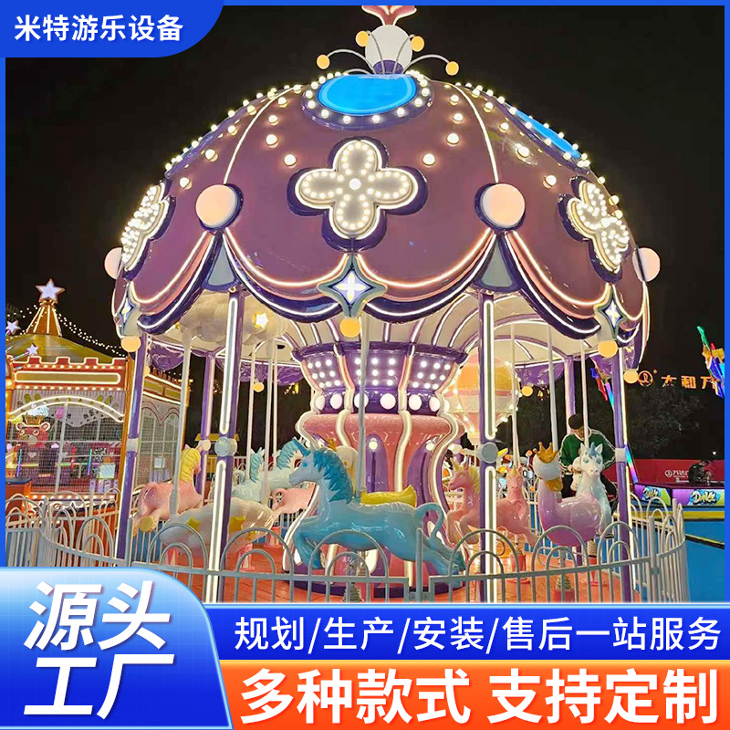 Kedatangan baru Court peralatan hiburan anak-anak carousel selebriti Internet persegi luar ruangan 16 orang kuda putar mewah