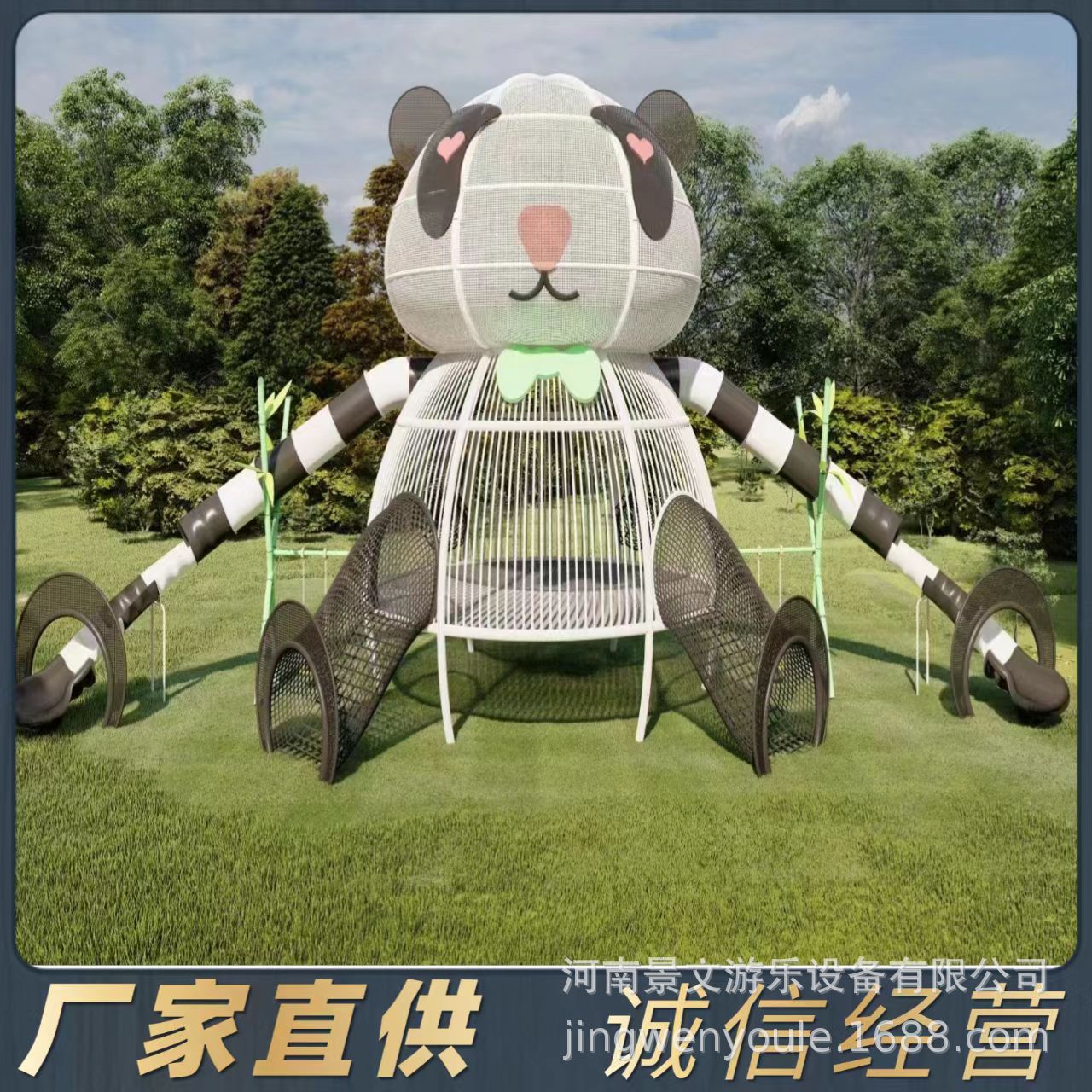 Trampolin panda tidak bertenaga Internet Fort selebriti luar ruangan taman indah anak-anak dua lapisan trampolin mendaki kombinasi peralatan hiburan