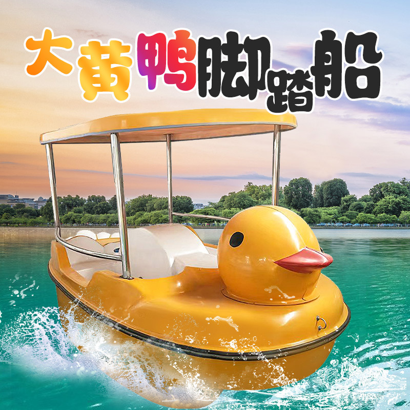 Pasokan produsen kartun bebek kuning pedal perahu pemandangan taman air perahu hiburan 4 orang naik pedal perahu