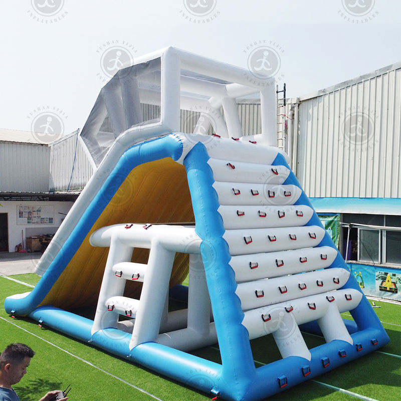 Menara mengambang tiup menggantung di sekitar kapal pesiar air hiburan laut ketinggian tinggi geser kombinasi mendaki trampolin geser