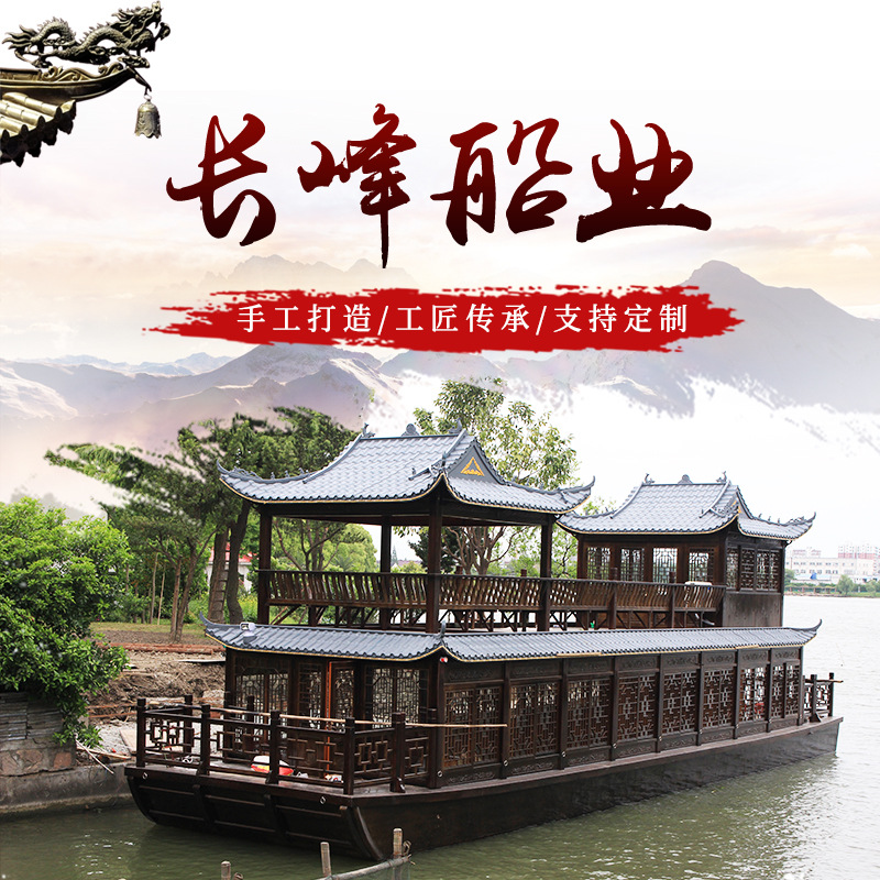 Lukisan perahu kayu yang dibuat dari pabrik air antik lapisan ganda ruang makan besar pariwisata wisata penerimaan proyek perjalanan budaya