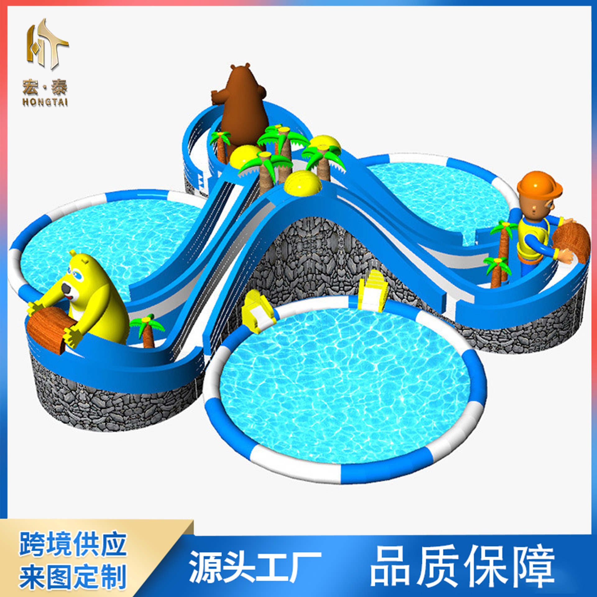 Peralatan Taman Air Bergerak Besar Perenang Air Inflatable Seluncuran Air Anak-anak Braket Kolam Renang Produsen Kolam Renang