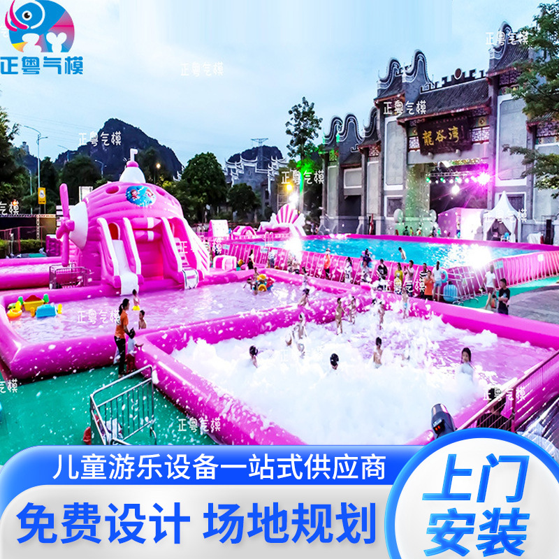Kolam renang tiup seri merah muda braket besar, taman air, kolam renang, luncuran masuk