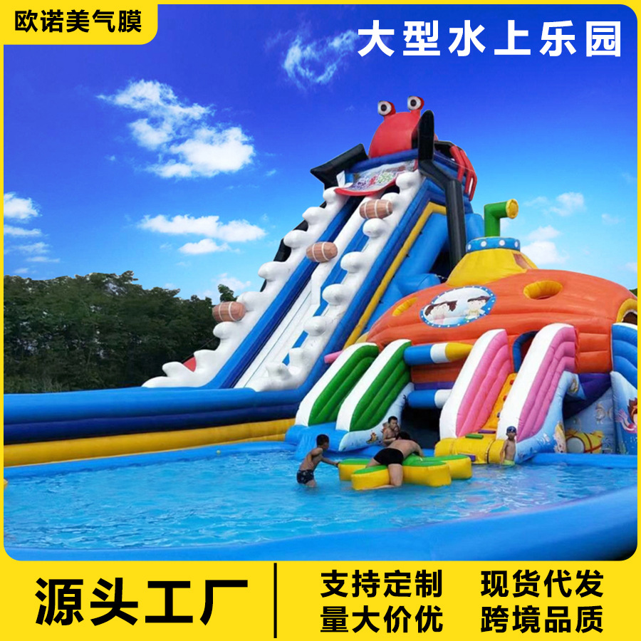 Seluncuran Air Keran Inflatable Mobile Besar Kombinasi Seluncuran Kolam Air Peralatan Taman Air Outdoor