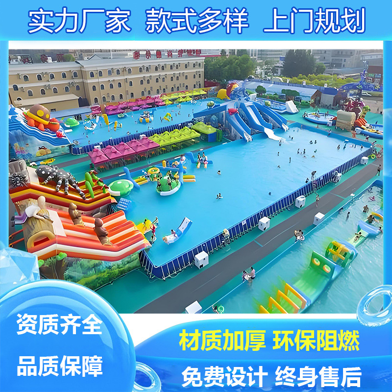 Peralatan Taman Air Besar Seluncuran Air Inflatable Kombinasi Kolam Renang Luar Ruangan Anak-anak Ponsel Braket Kolam Renang Produsen