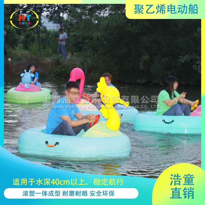 Haotong penjualan langsung taman induk-anak perahu polyethylene air kartun perahu listrik besar peralatan taman air grosir