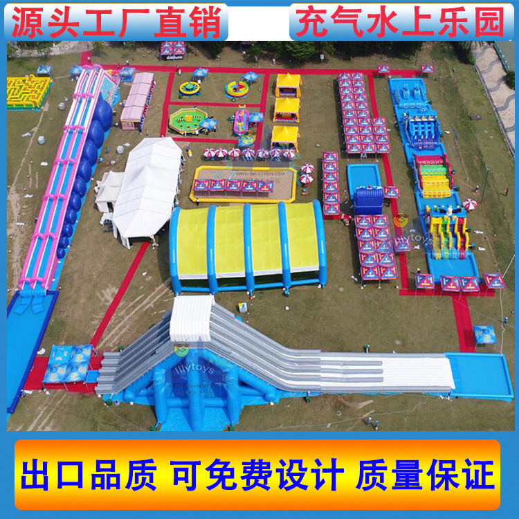 Taman Air Besar tiup seluler PVC dipertebal peralatan hiburan produsen peralatan kolam masuk pintu masuk