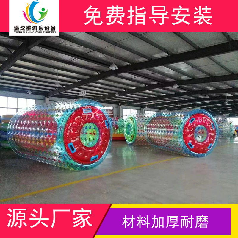 Rol air pvc tebal bola berjalan tiup, mainan roller lari bola, peralatan hiburan air luar ruangan