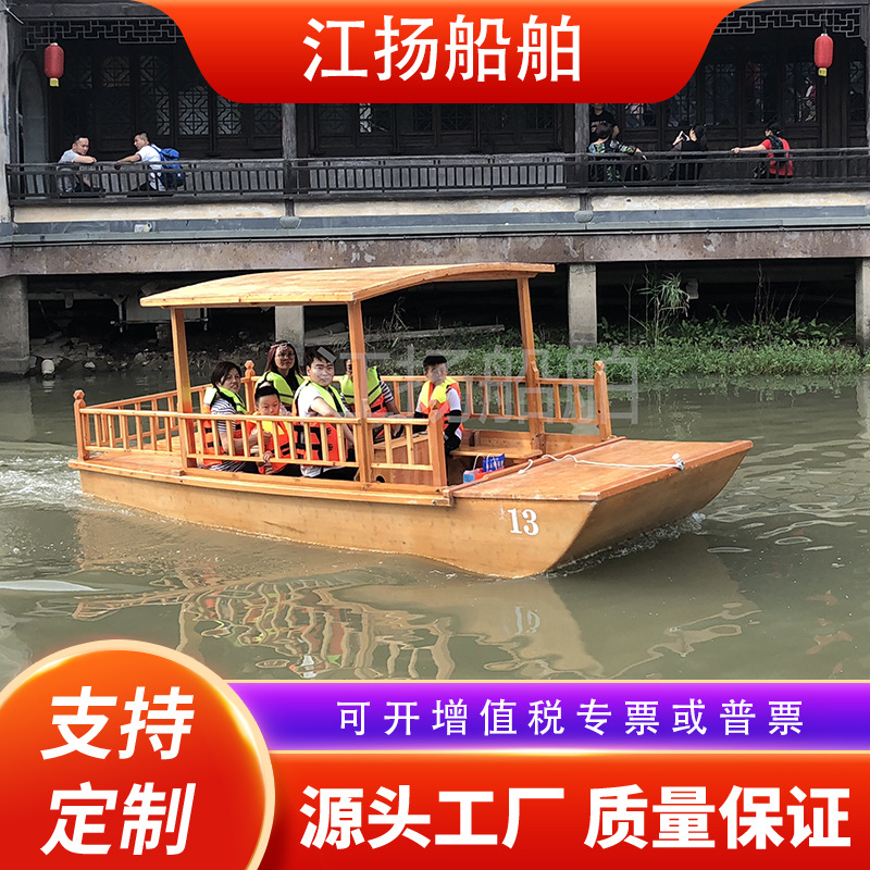 Perahu kayu antik ditarik tangan perahu goyang air elektrik pemandangan perahu lukisan Cina perahu Internet selebriti kinerja perahu