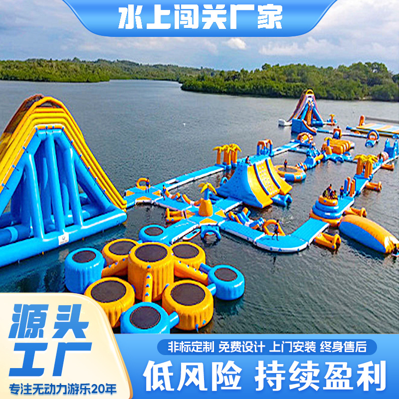 Air Inflatable Melewati Luar Ruangan Besar Mobile Waterpark Peralatan Bermain Anak-anak Seluncuran Air Gas Pabrik