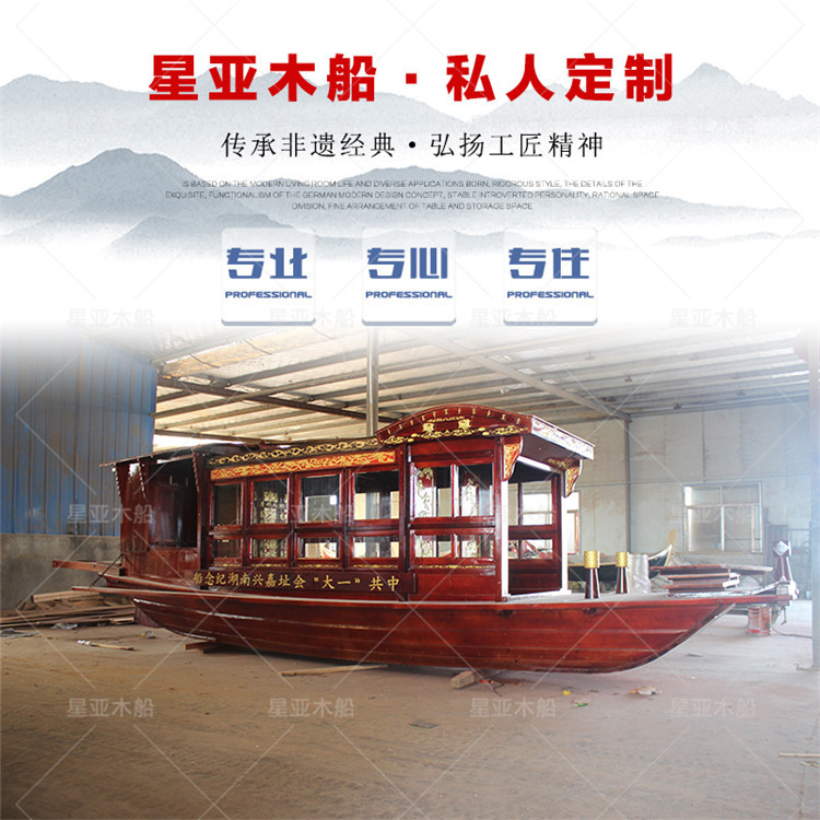 Kayu antik kustom perahu kayu Jiaxing Nanhu perahu merah lukisan makan listrik perahu wepan perahu dekorasi perahu