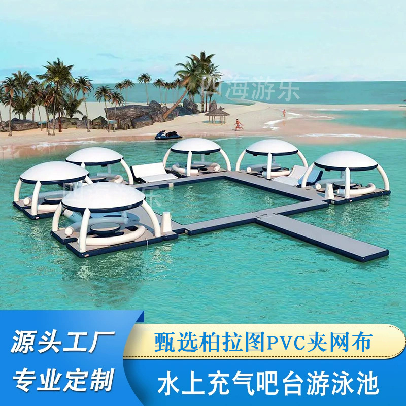 Tenda platform apung laut tiup, tenda sofa mewah saku jaring air anti tenggelam menyelam kolam renang kapal pesiar bar