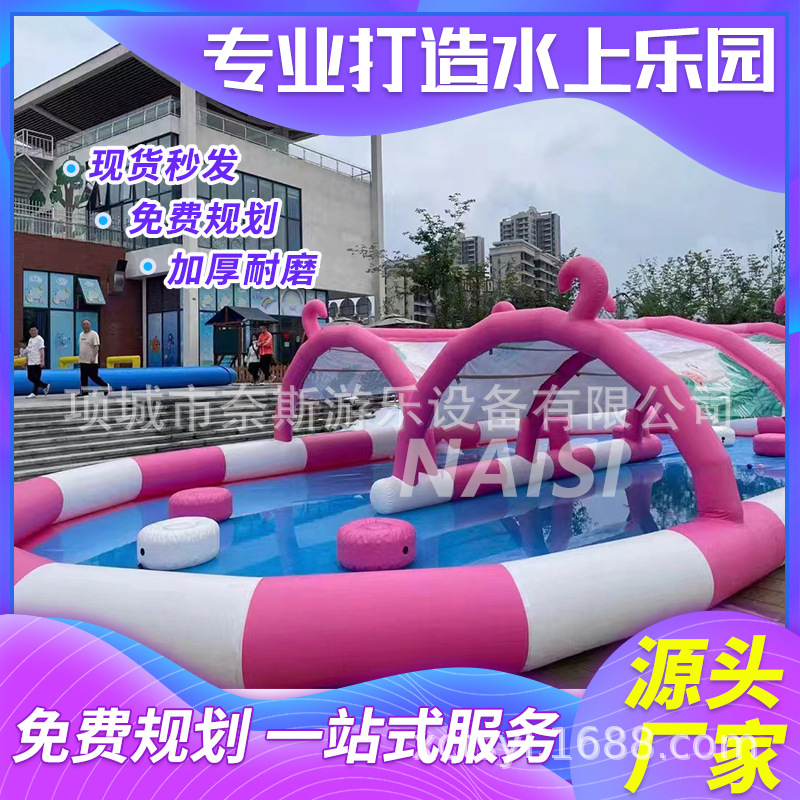 Produsen perlengkapan taman air kolam renang braket mobile masuk taman hiburan perosotan air kolam tiup besar anak-anak