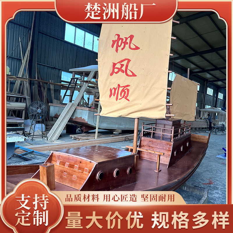 Pasokan pabrik dekorasi pemandangan perahu layar lanskap besar perahu kayu antik perahu keberuntungan Zheng He kapal harta karun kapal bajak laut kayu padat