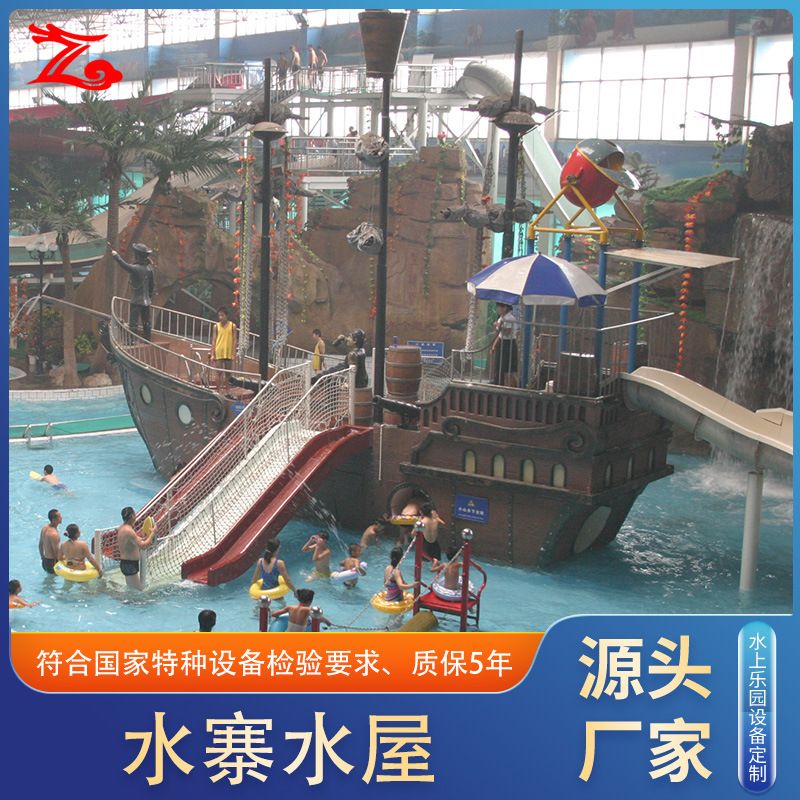 Peralatan hiburan luar ruangan besar kapal perompak kayu baja nirkarat kombinasi fasilitas hiburan anak-anak tidak bertenaga