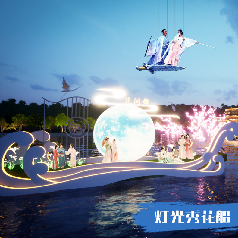 Produsen lampu kustom menunjukkan bunga perahu mengapung antik kayu lanskap besar desain perahu