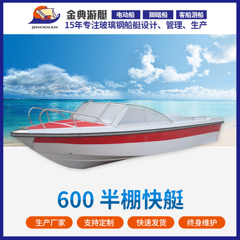 Produsen menyediakan semi-tertutup 5.92 m 8 kursi speedboat semi-tertutup kapal pesiar semi-shed full shed patrol perahu resmi