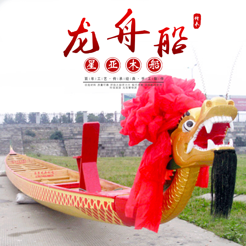 Produsen menyediakan Festival Perahu Naga kustom tradisional kayu standar internasional 12-22 orang kompetisi pemandangan perahu naga