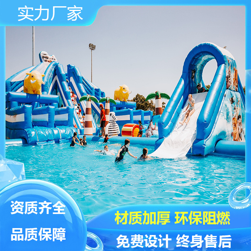 Produsen perlengkapan taman air kolam renang braket mobile masuk taman hiburan perosotan air kolam tiup besar anak-anak