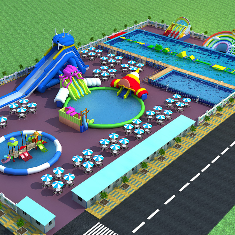 Braket proyek taman air kolam renang perosotan kolam renang tiup fasilitas pintu masuk seluler tempat bermain anak-anak musim panas
