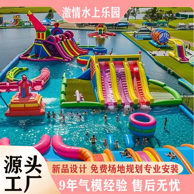Pabrikan peralatan hiburan taman air tiup berskala besar di area yang indah menerobos gerbang
