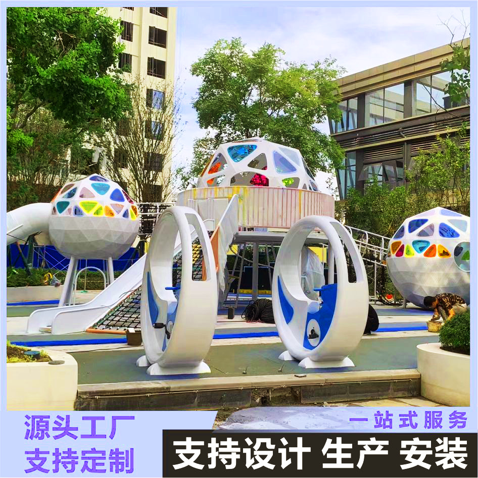 Taman komunitas real estat luar ruangan dilengkapi dengan peralatan panjat slide stainless steel besar yang tidak berdaya