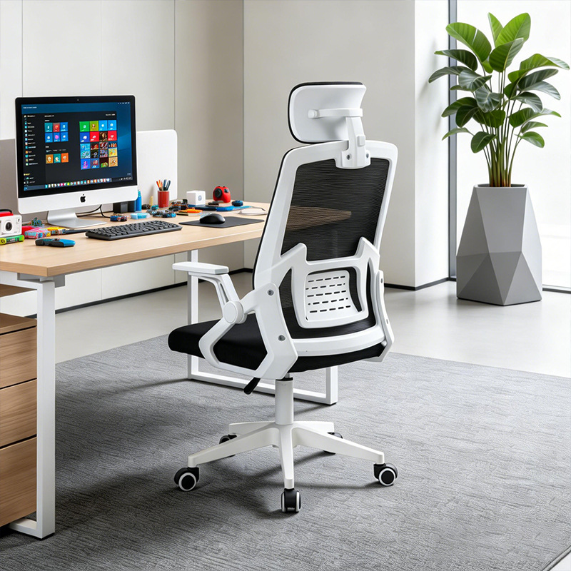 Kursi komputer rumah ergonomis, dudukan panjang kantor sandaran, koreksi postur duduk dapat diatur
