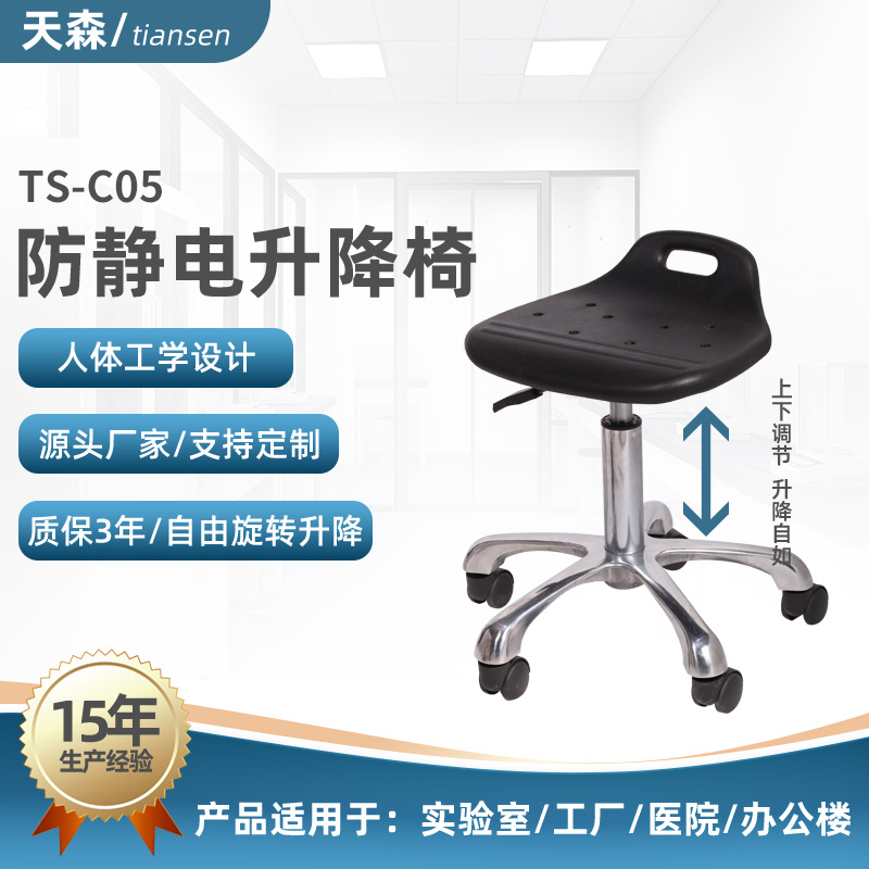 Kursi sandaran punggung antistatis, bangku kerja laboratorium perakitan bengkel angkat berputar busa PU Anti statis grosir