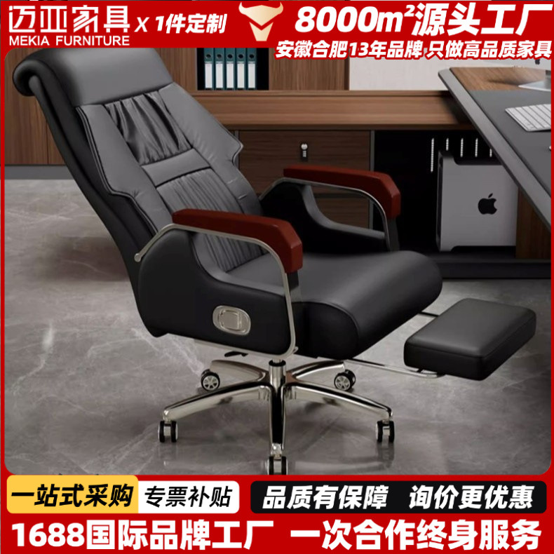 Kursi kulit asli boss Bisnis sandaran makan siang, kursi komputer rumah kantor kursi kantor kursi duduk panjang nyaman