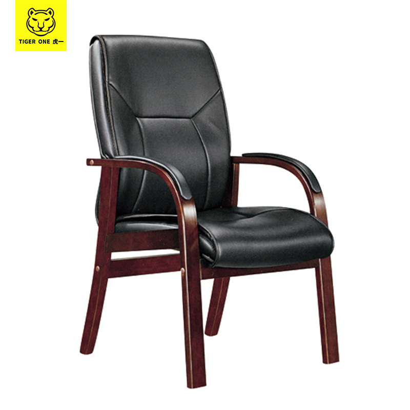 Huyi kursi konferensi furnitur kantor, kursi kayu ek padat empat kaki kursi kantor kursi latihan kursi kenari kulit barat hitam