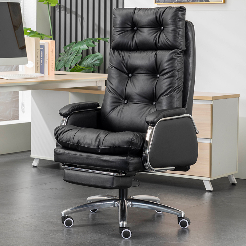 Kursi kantor kulit sandaran panjang, tempat duduk komputer nyaman, sandaran kaki untuk rumah, olahraga, kursi pijat
