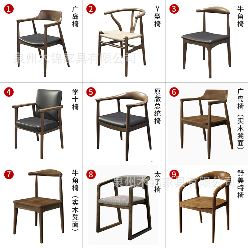 Kursi kantor Nordik retro, kursi komputer kursi belakang bos kursi makan teh China negosiasi kursi kayu solid