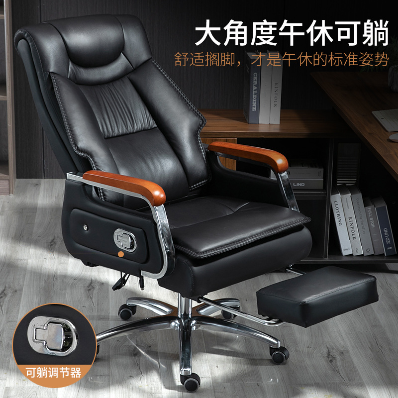 Kursi kulit asli boss, kursi bisnis kelas atas kantor nyaman duduk Panjang komputer, kursi kantor berbaring rumah